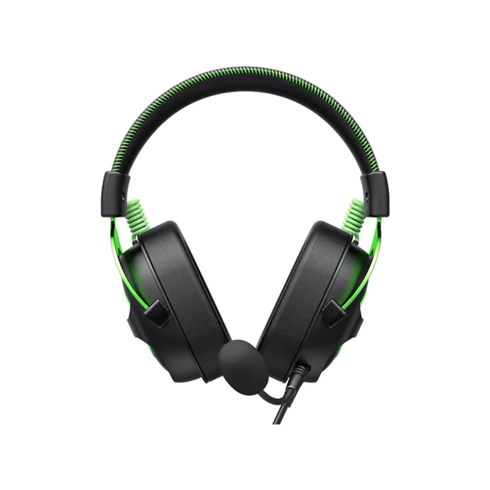 تصميم متين وأنيق: هيكل متين بتصميم أسود وأخضر جذاب، مع شريط رأس قابل للتعديل لضمان ملاءمة مثالية.