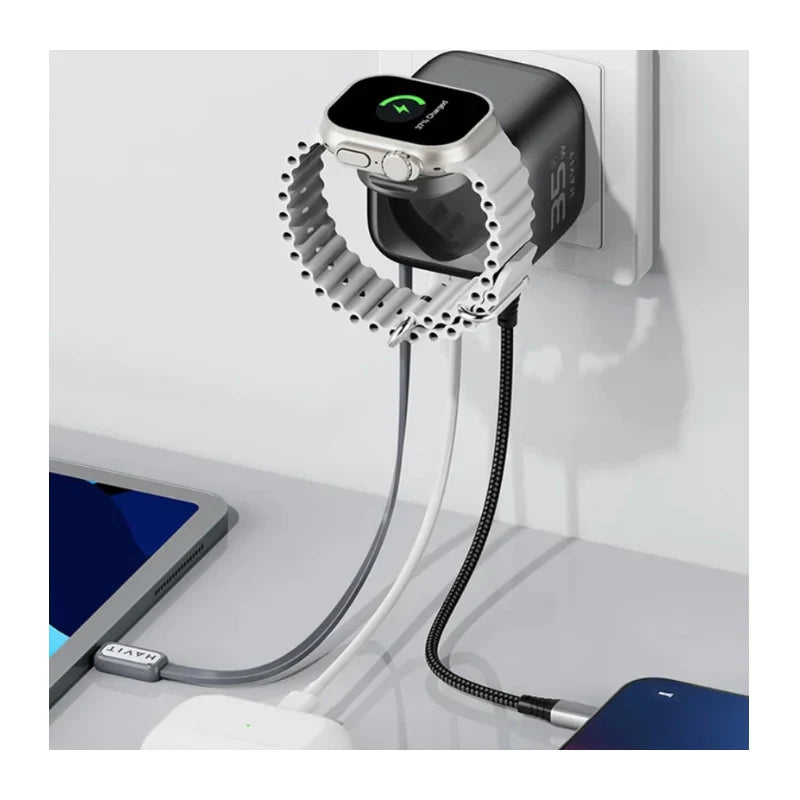 شاحن هافيت UC250 المتكامل (Havit) - الموديل UC250 شاحن سفر 35 واط بتقنية GaN: كيبل قابل للسحب وشاحن ساعة مدمج