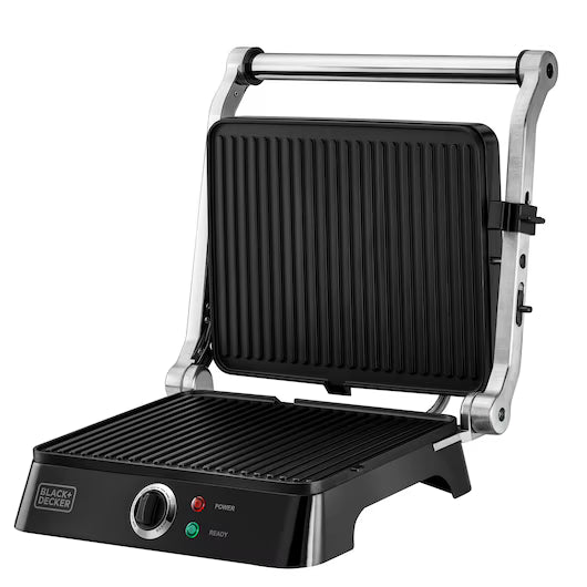 خاصية الشواء بزاوية 180 درجة: تفتح بالكامل لتمنحك مساحة شواء مضاعفة، مثالية لتحضير وجبة كبيرة أو شواء أنواع متعددة من الطعام في نفس الوقت.